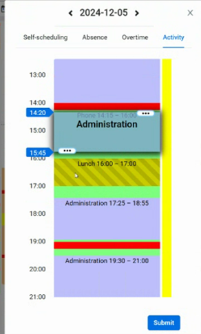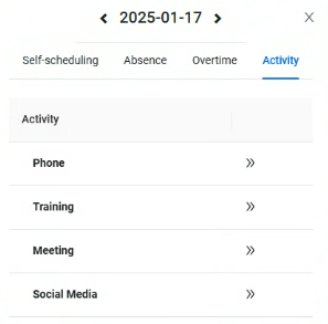 NOTE Only activities that meet the validation rules set in WFM Settings will be available for selection.