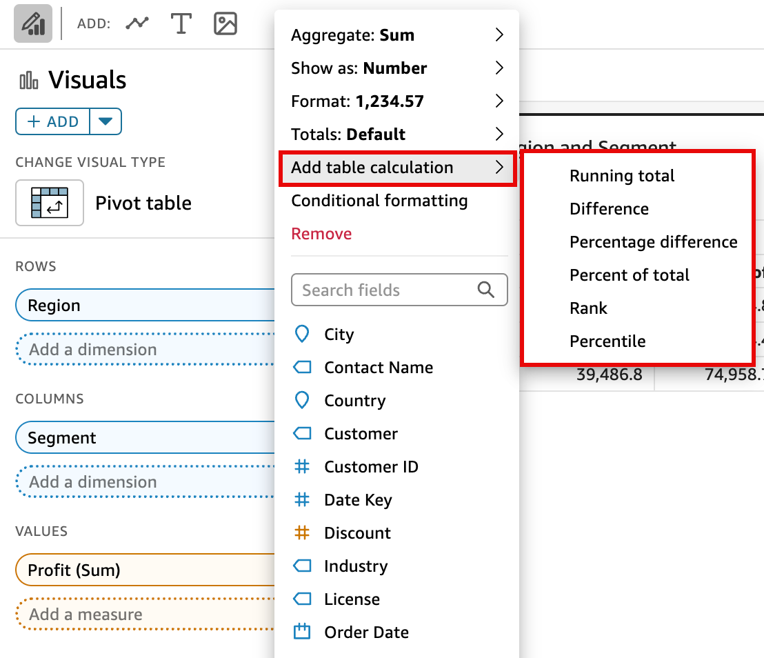 Add a table calculation to a pivot table