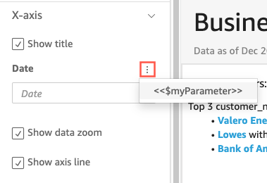 Choose the three dots at the right of Edit title or Edit subtitle, and then choose a parameter from the list.