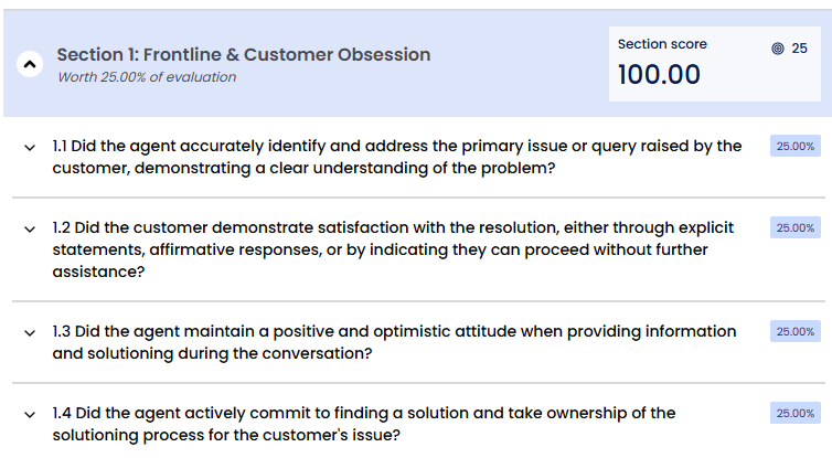 You can edit the AI score for a question if you have the Edit Auto QM permission. The new score replaces the AI score in all places where Auto QM scores appear.