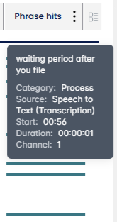 IMPORTANT The information on this page is about the Phrase Hits panel in the new media player. For information about the Phrase Hits panel in the classic media player, go here: View phrase analytics for an audio contact in the classic media player.