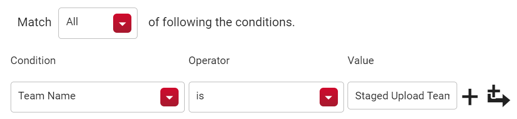 In the Conditions section, specify criteria that apply to all recordings captured by the PCs of all agents who will use staged upload.